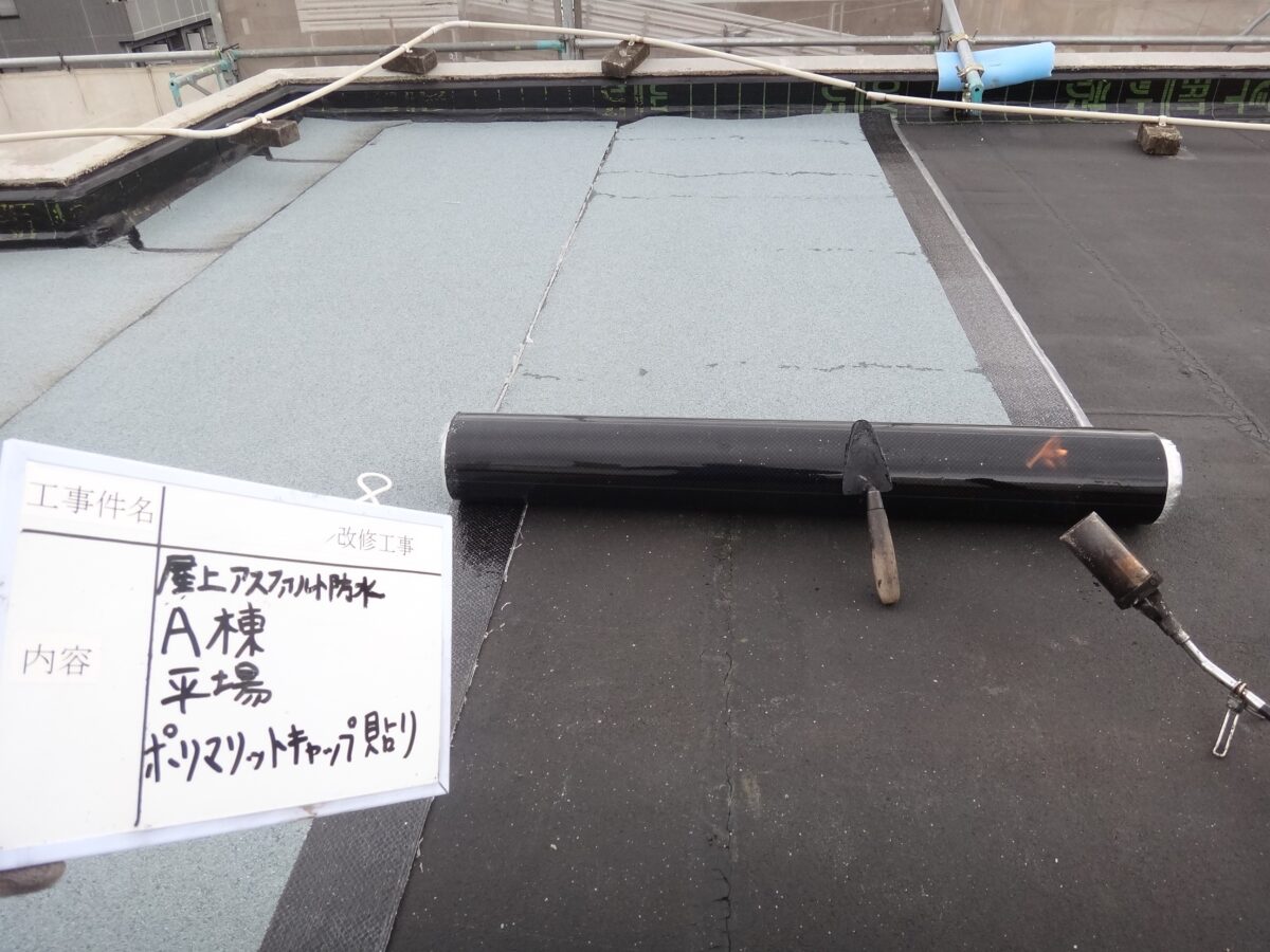 お客様のマンションでは、新築時にアスファルト防水の上に、保護モルタルを敷いて仕上げ、そこからさらに改修工事が入り、その上に防水層がある。つまりは2重防水になっている建物でした。