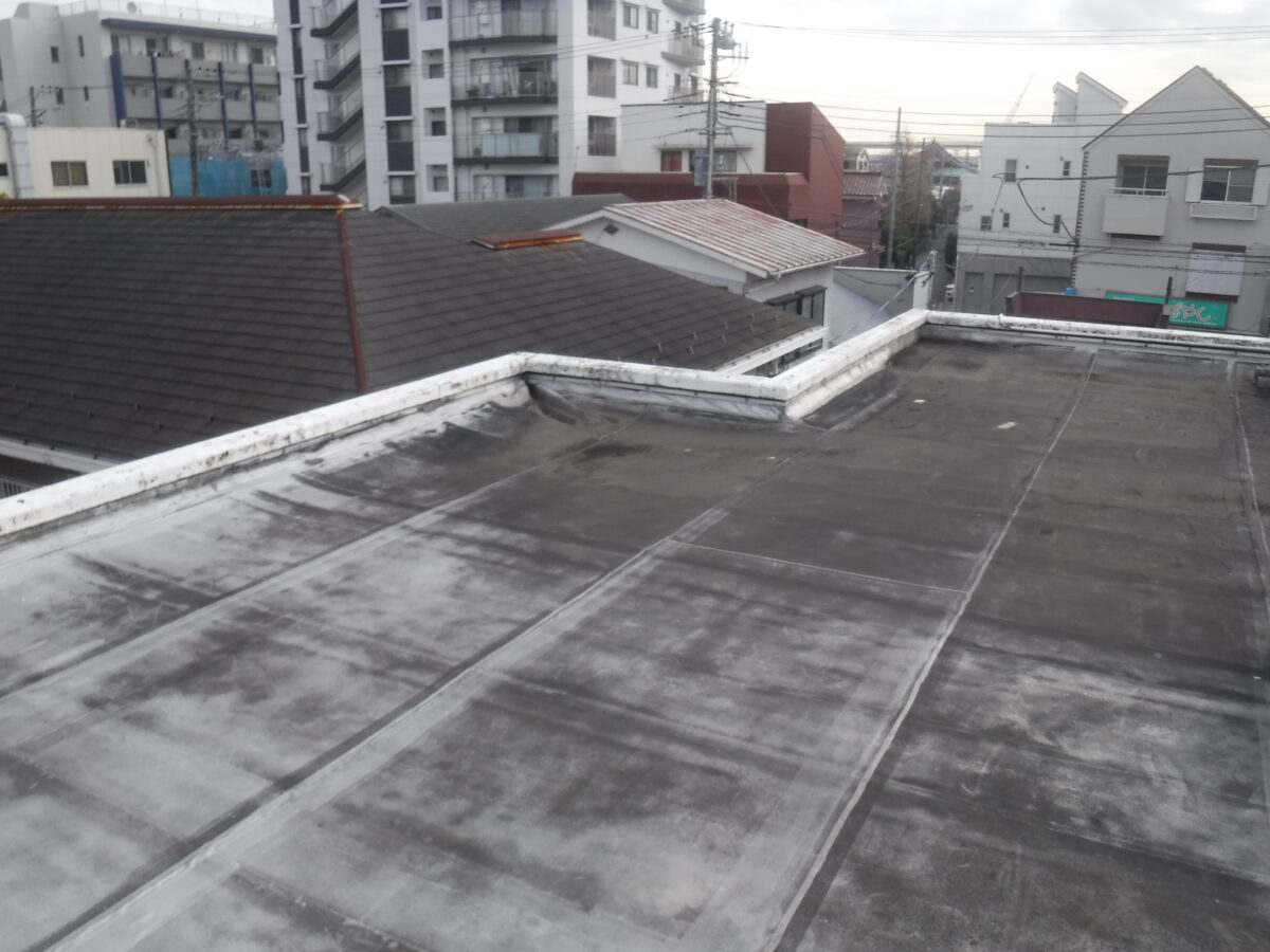 横浜市中区にある築28年の鉄筋コンクリート造二階建ての建物で、長年にわたって悩まされてきた屋上の漏水問題に取り組んだ工事がありました。