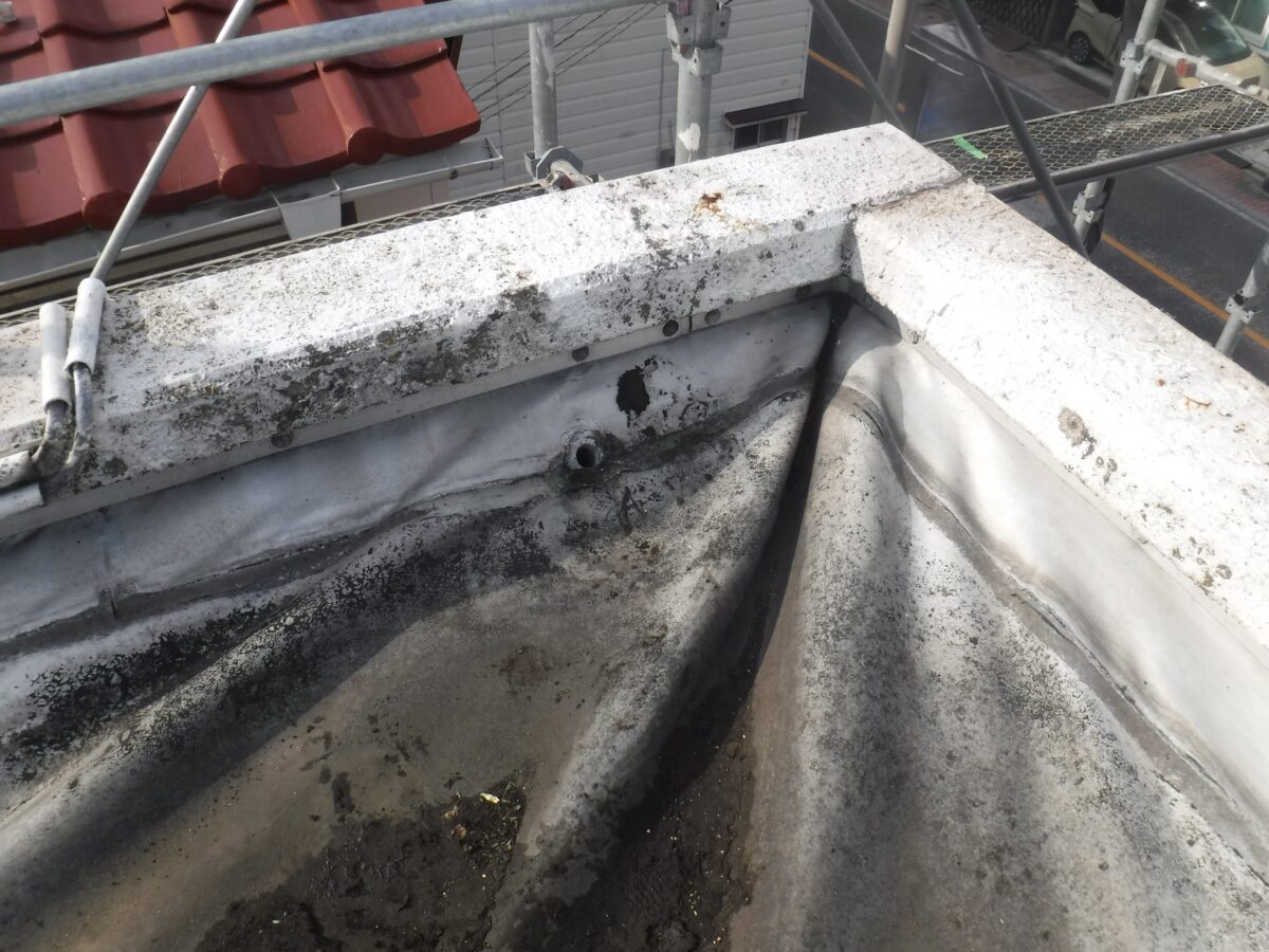 笠木にはそもそも防水処理が施されておらず、コンクリート躯体との接点から雨水が内部へ侵入した痕跡も明らかでした。こうした状態が、漏水を再発させる根本的な原因となっていたのです。