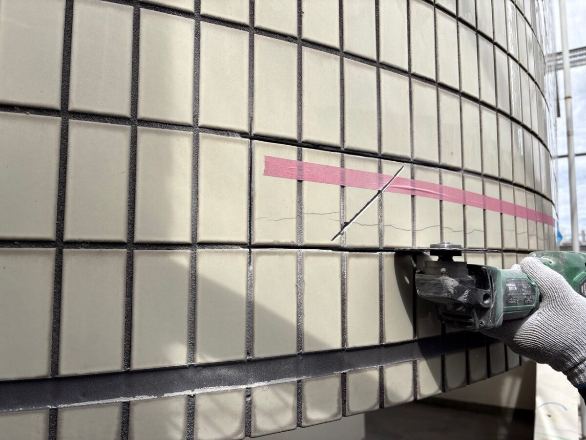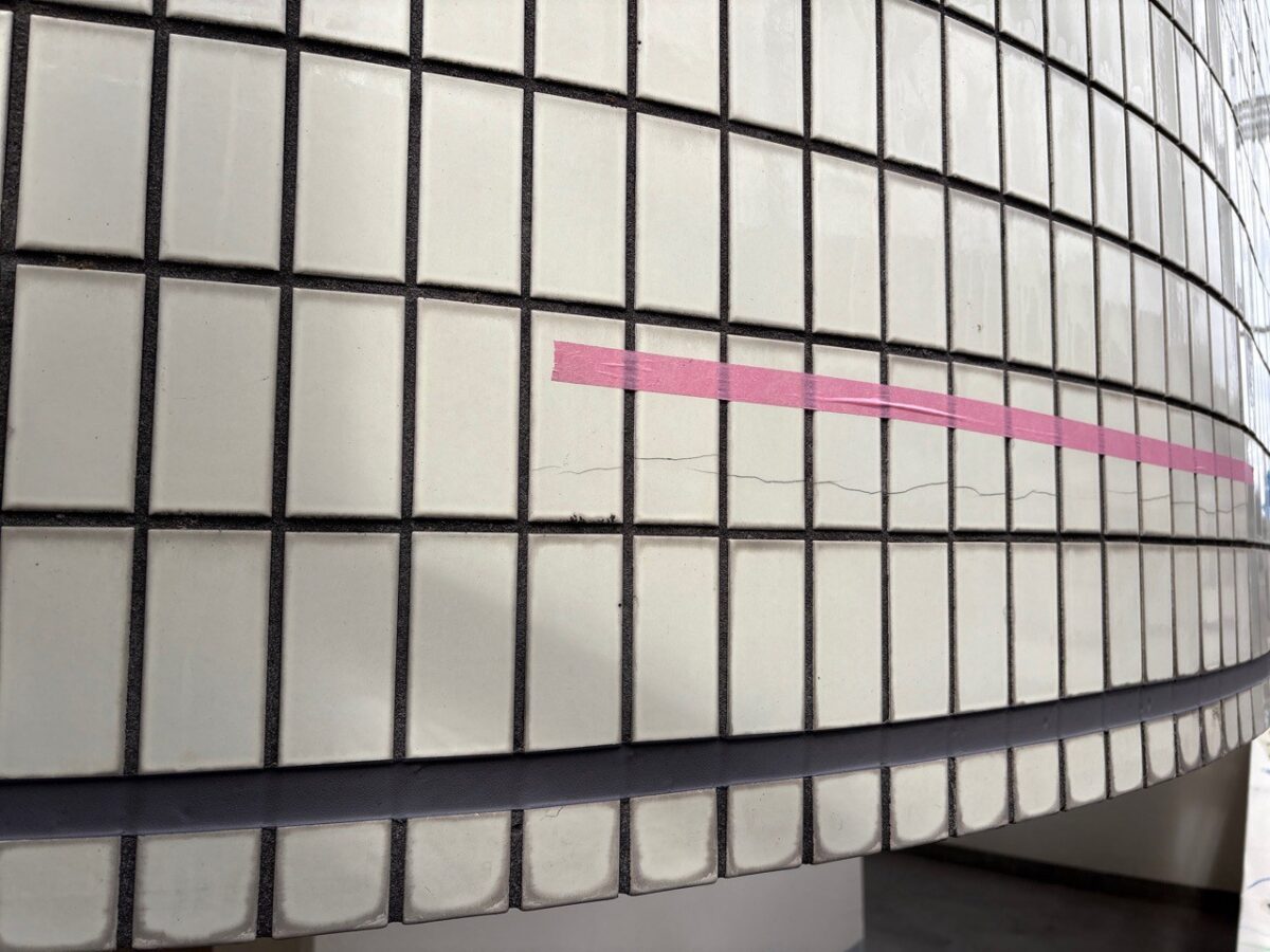 まず、タイルが割れている、いわゆるクラックが入った状態の補修工事です。