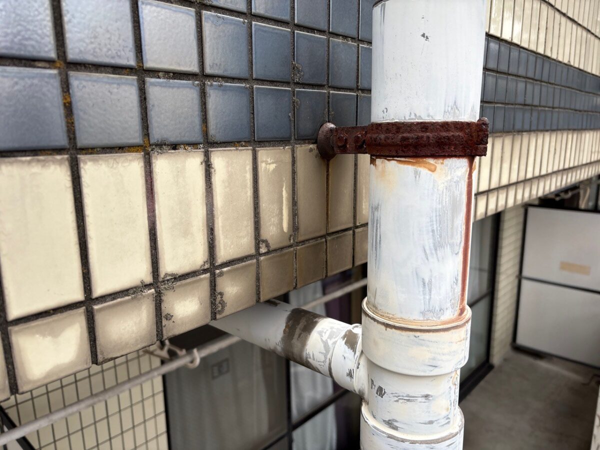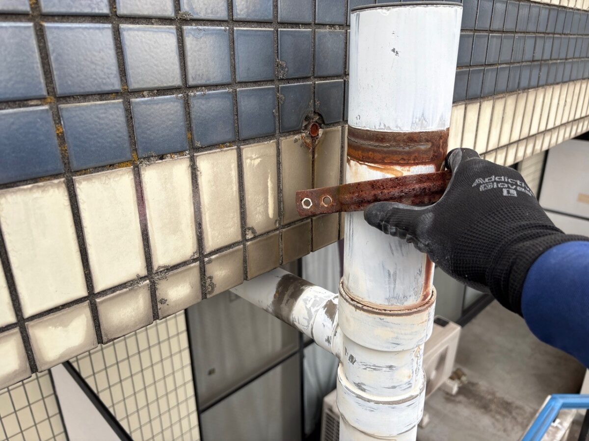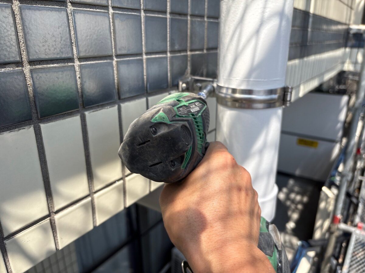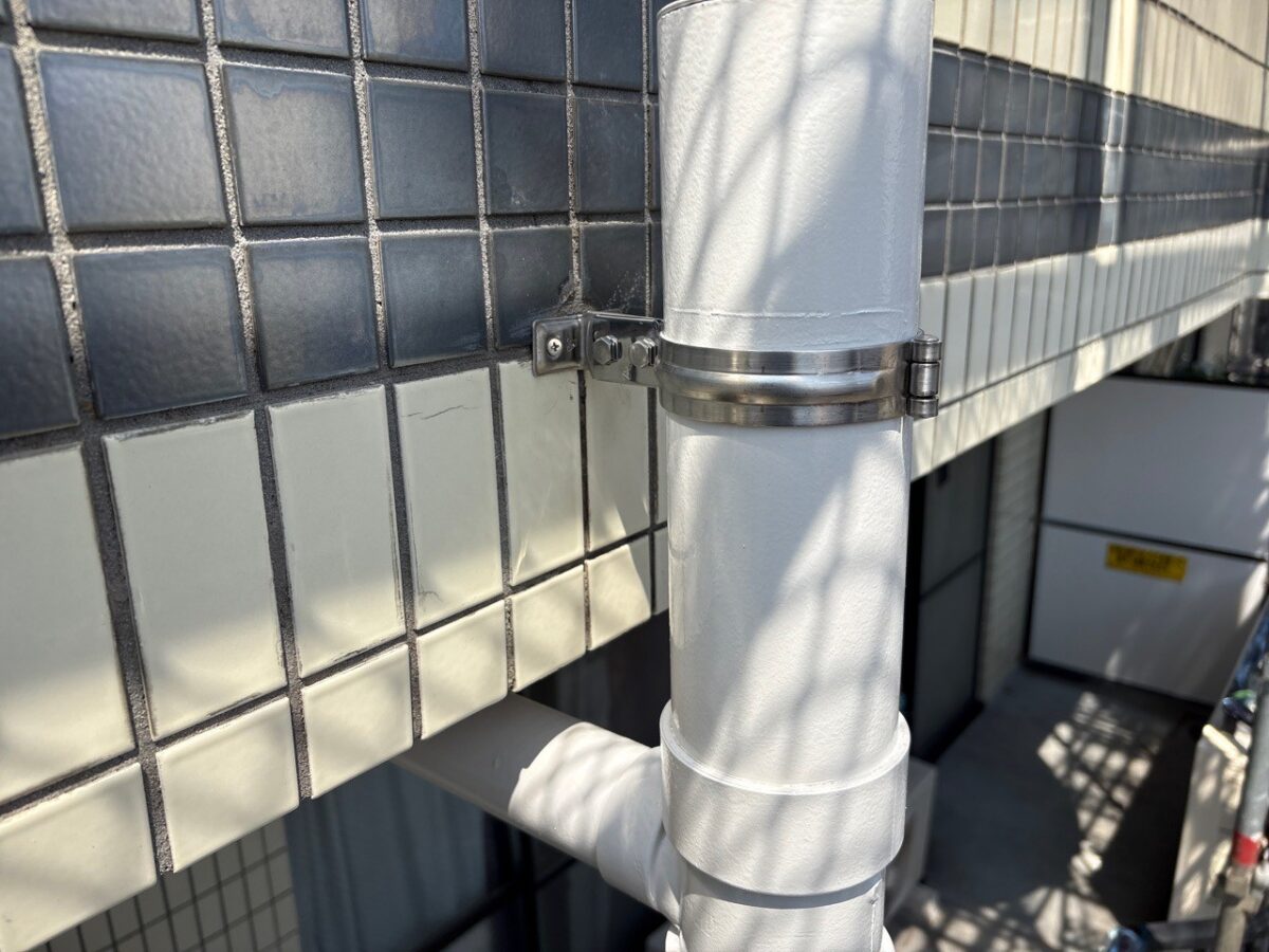 同じタイルの外壁で、配管バンドの取り替え工事も行いましたので併せてご紹介します。