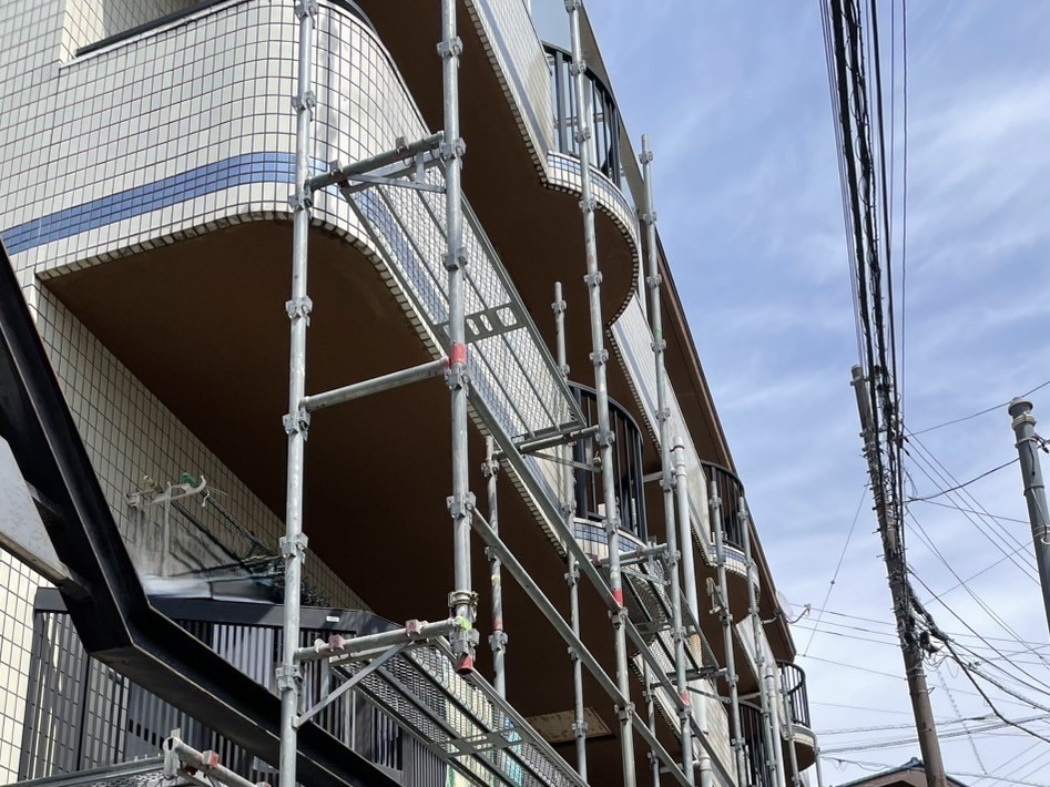 工事手順によっては、下地補修時に新バンドまで取り付けその上から養生をし、後から塗装する場合もありますが、順番は工事の方法や状況に応じて変わります。