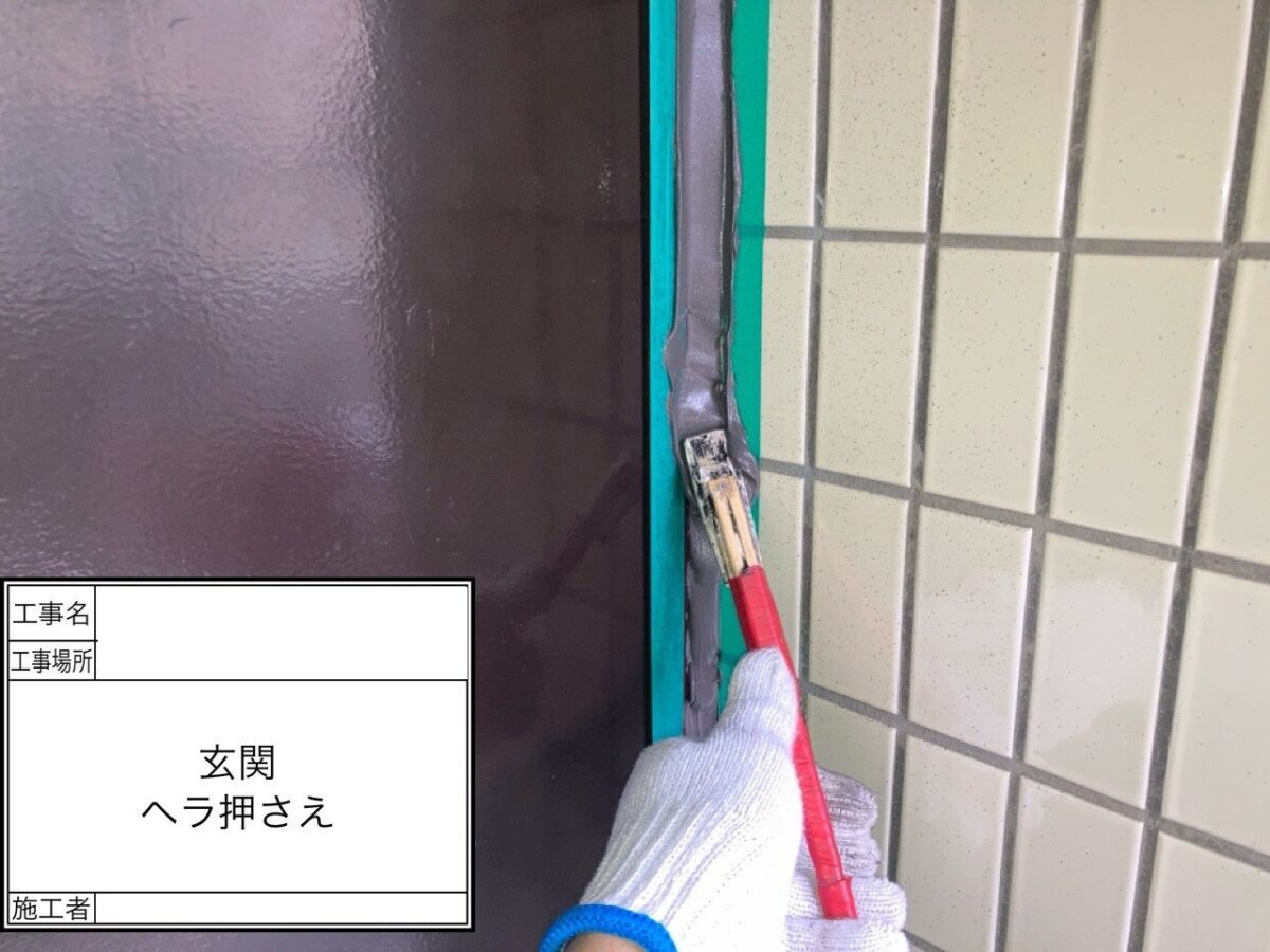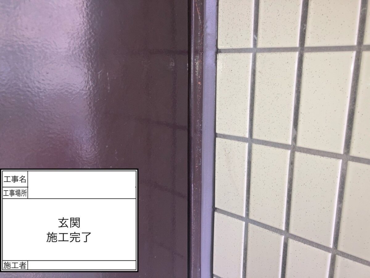 今回は玄関扉で、人の行き来が多い場所だったため、シーリング工事後に「打ち立て注意」