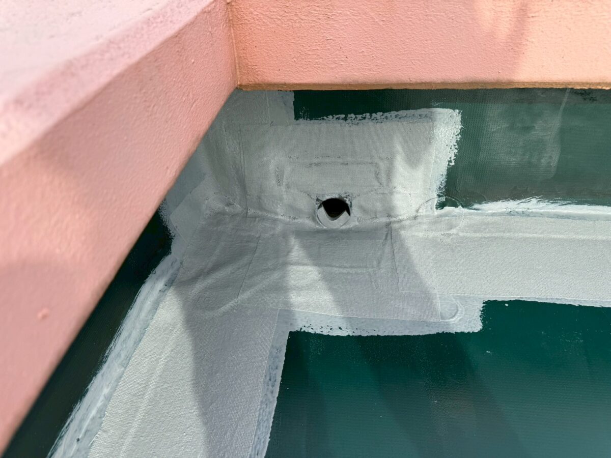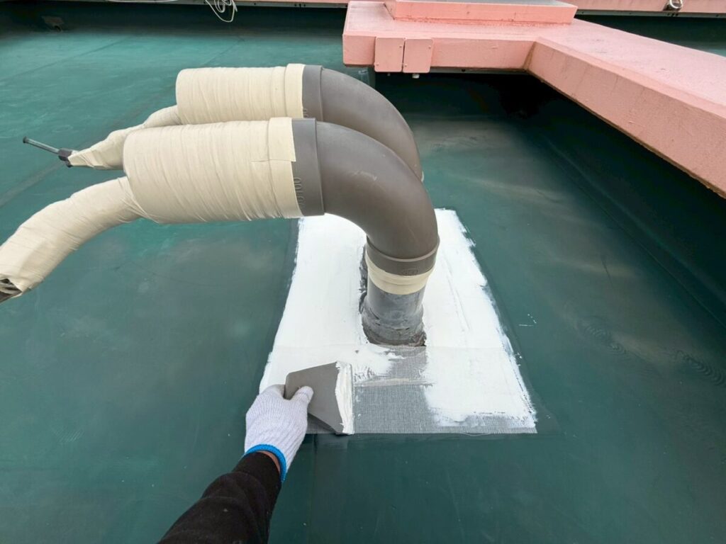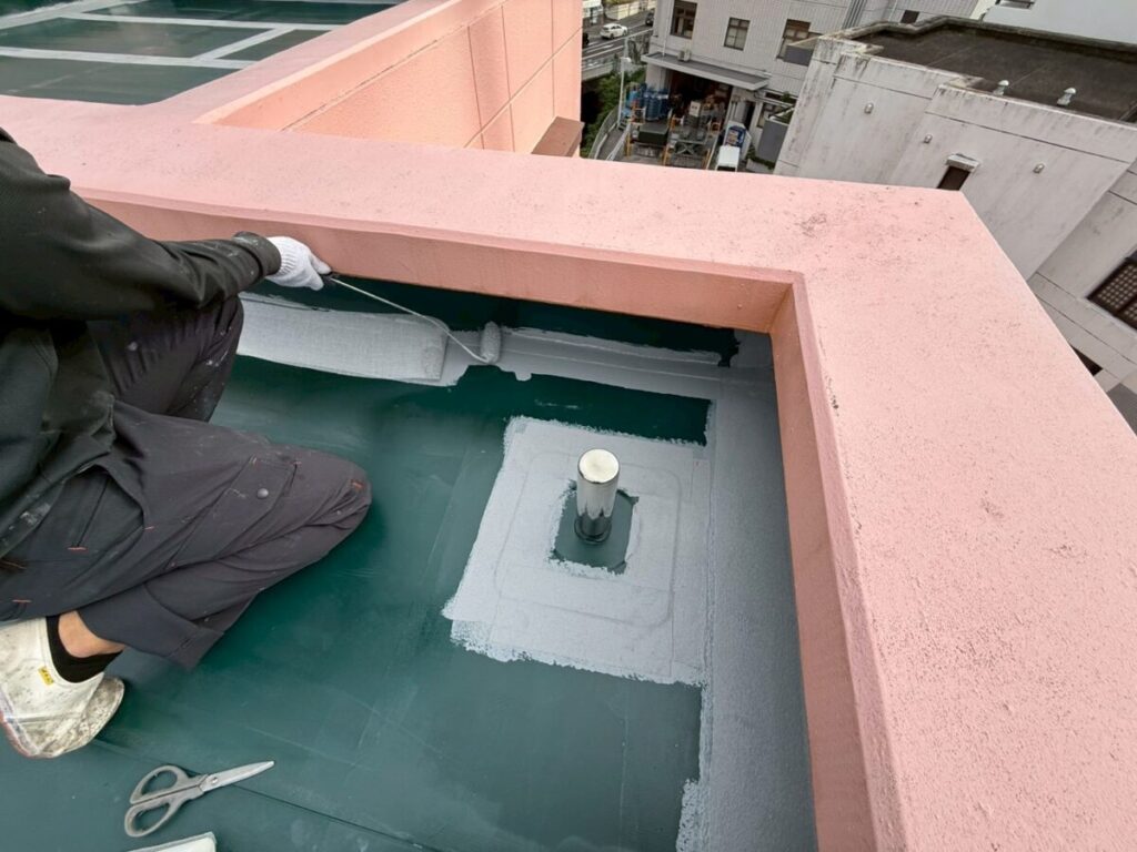 写真のように細かい部分までしっかり塗り込むことで、防水層が途切れないように仕上げています。