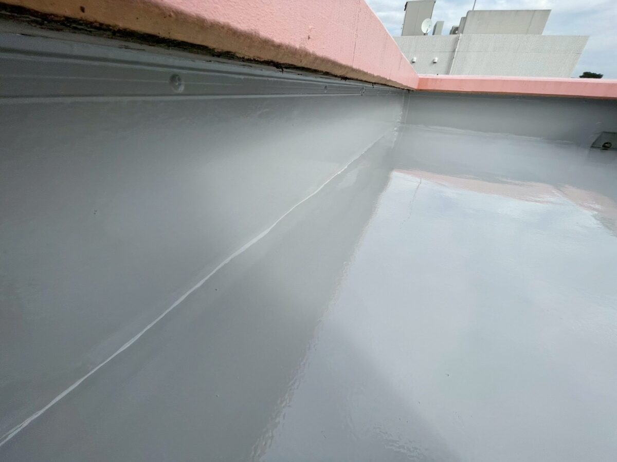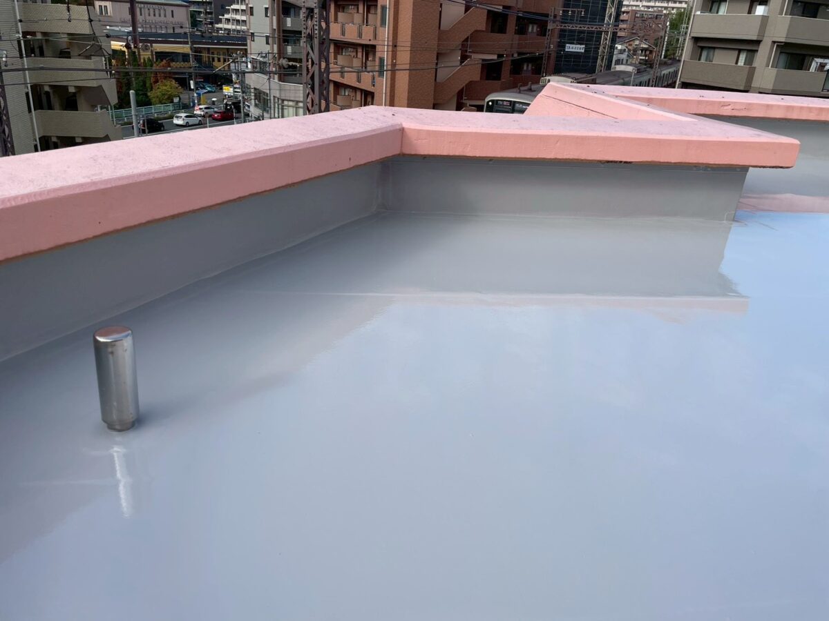 施工後は、全体が均一な防水層で覆われ、継ぎ目のないきれいな仕上がりになりました。